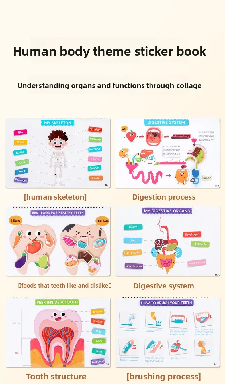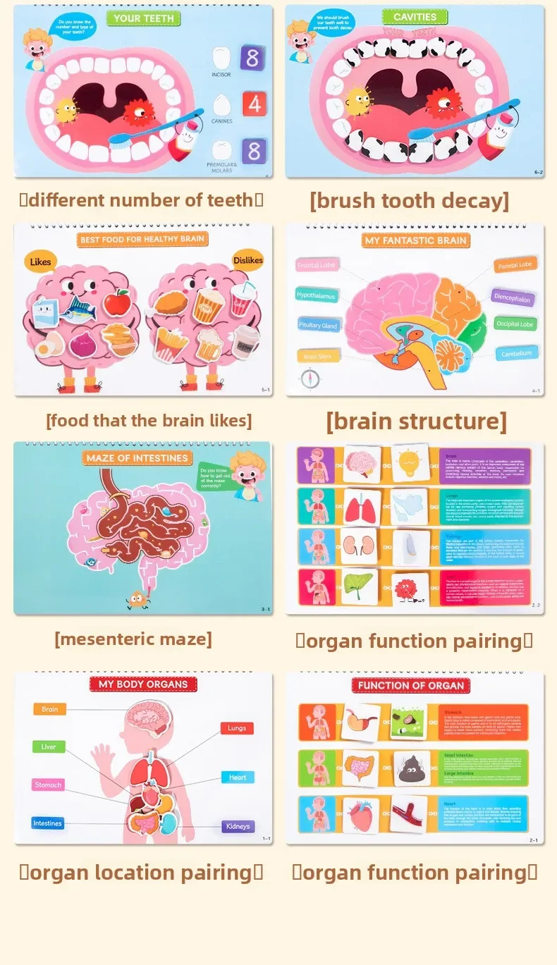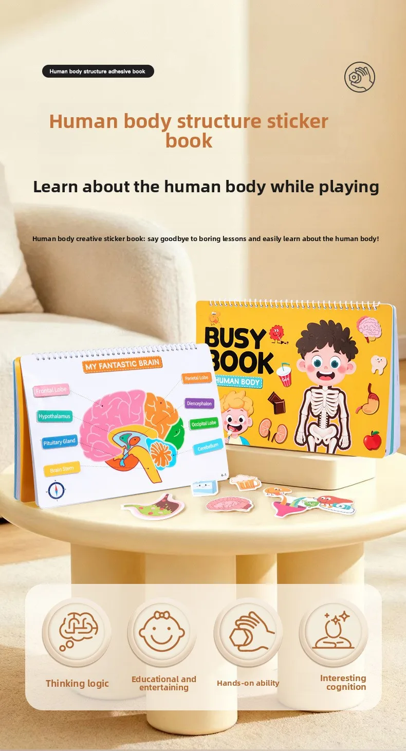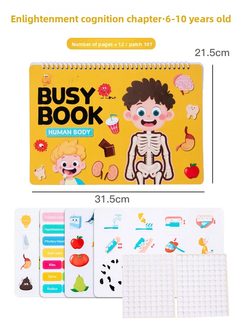Quiet Book Busy Body Structure Book Cross Border Kids Early Education Cognitive Tear and Paste Flipping Preschool Enlightenment
